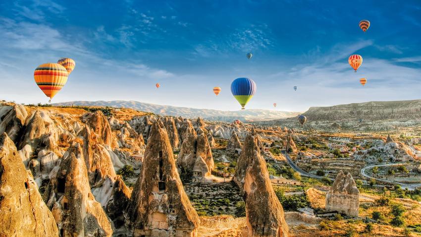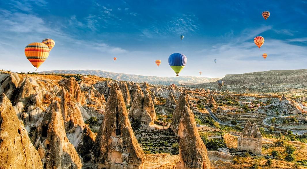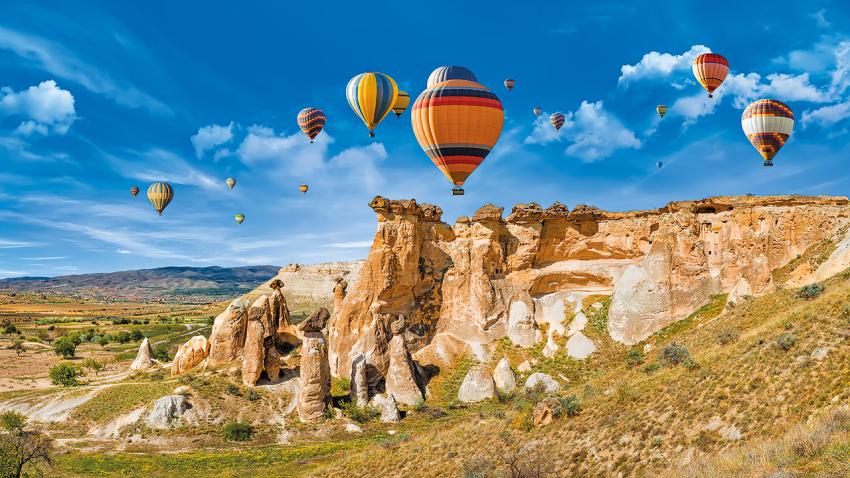 Hőlégballonos túra (időjárásfüggő)Kappadókia lélegzetelállító holdbéli tájait madártávlatból csodálhatjuk meg napfelkeltekor. A sziklák színei és a csendes lebegés különleges élményt nyújtanak.