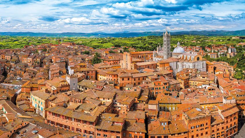Siena, a három dombon fekvő város Olaszország legkáprázatosabb kincsei közé tartozik. Az ősi város ékkőként illeszkedik az azt körülvevő vidéki tájba. Az egész történelmi belvárost felvette az UNESCO a Világörökségi listájára. Számos pontja olyan, mint amilyen az 1300-as években lehetett – a középkori jelleg megőrzése teszi az egyik leggyönyörűbb olasz várossá. Európa egyik leginkább szemet gyönyörködtető középkori terén, a neves lovasversenyek helyszínén, a Piazza del Campón méltóságteljes gótikus épületek törnek a magasba, melyek a 12. és 15. század között épültek. Ide futnak össze a domboldalról lefutó utcák is. Itt találjuk a 14. századi Palazzo Pubblicót, azaz Városházát is, Siena jelképét. Harangtornya a Torre del Mangia. Helyszínen foglalható fakultatív: borkóstolás. Visszatérés a hotelbe.